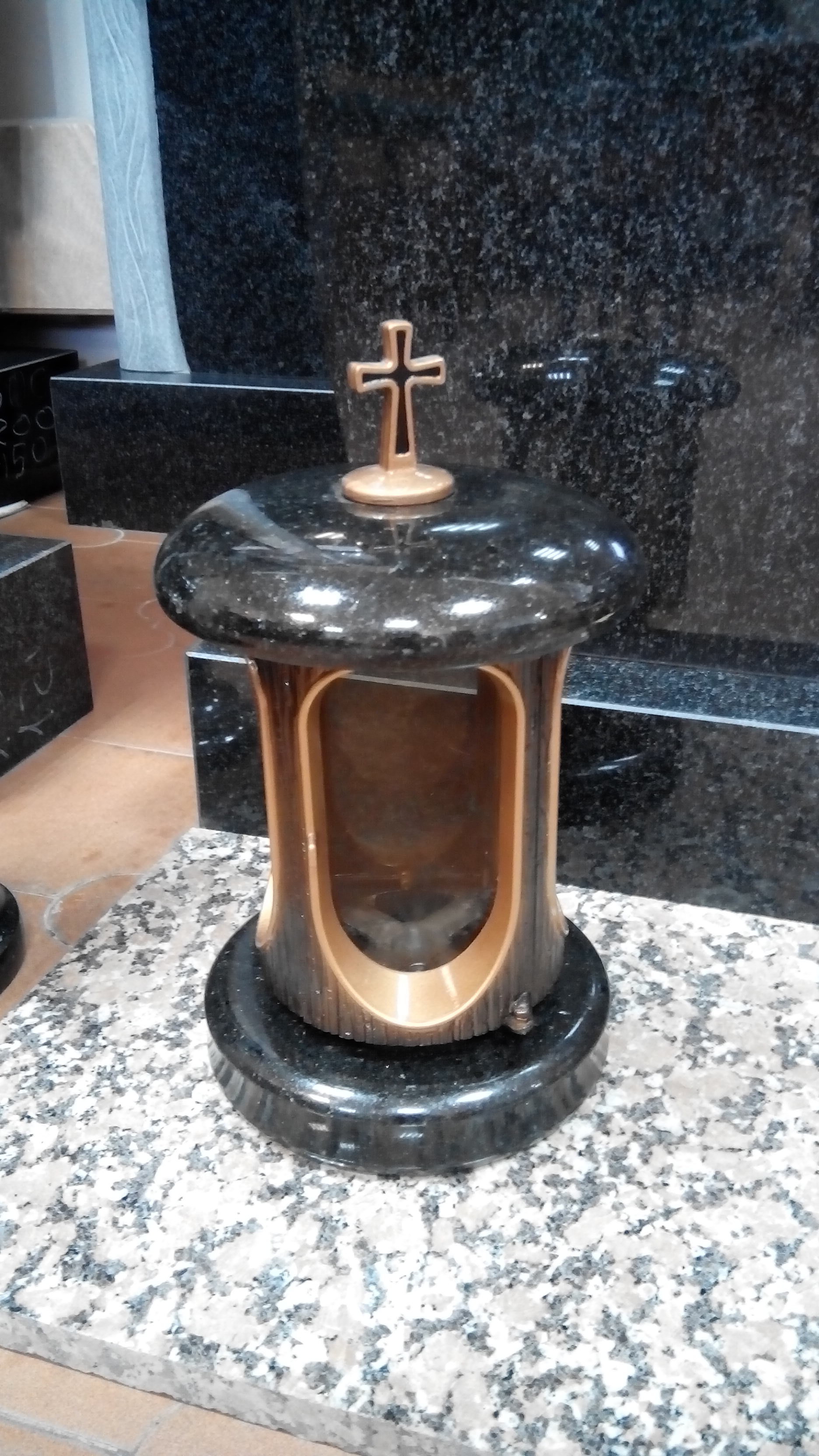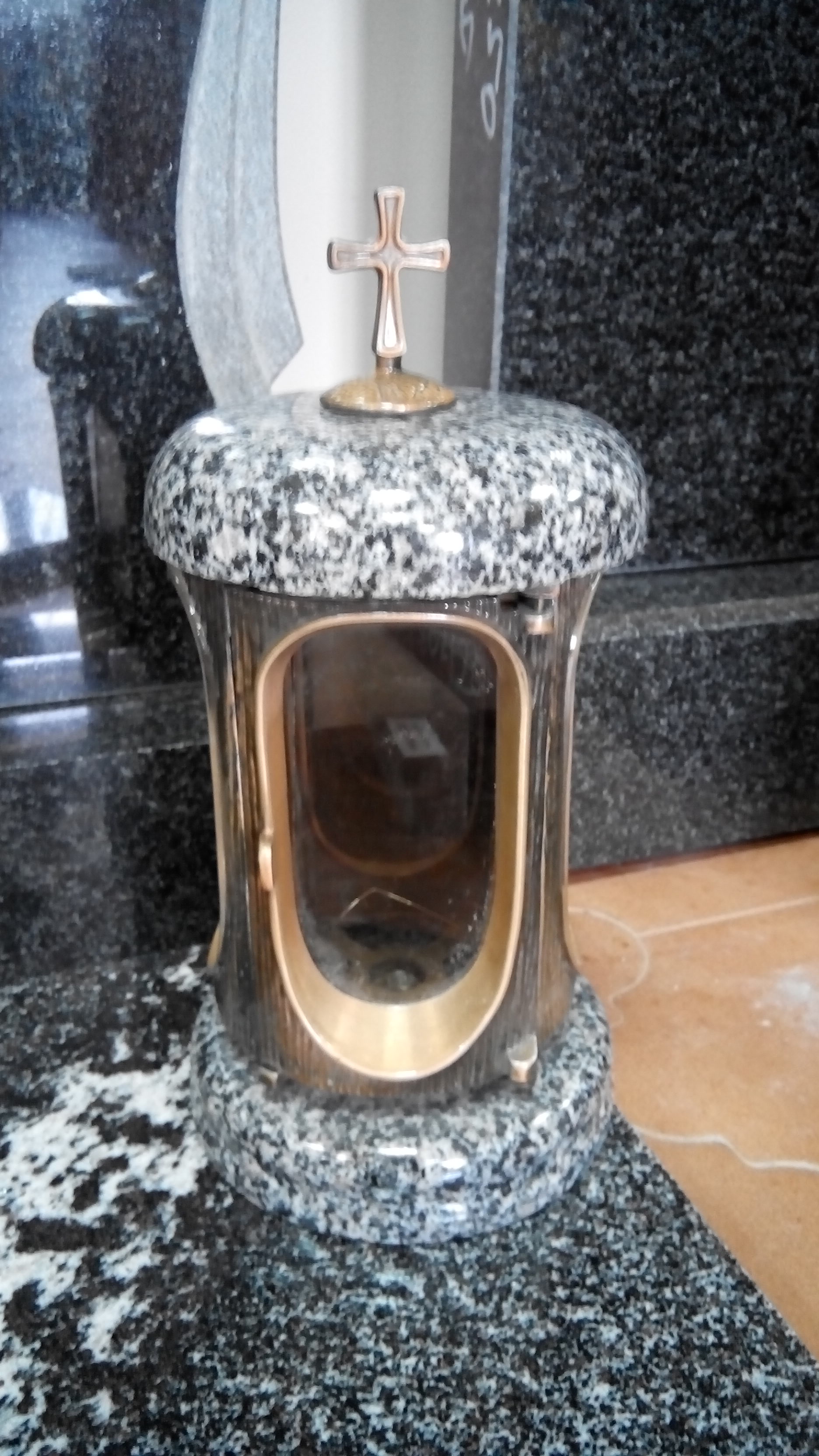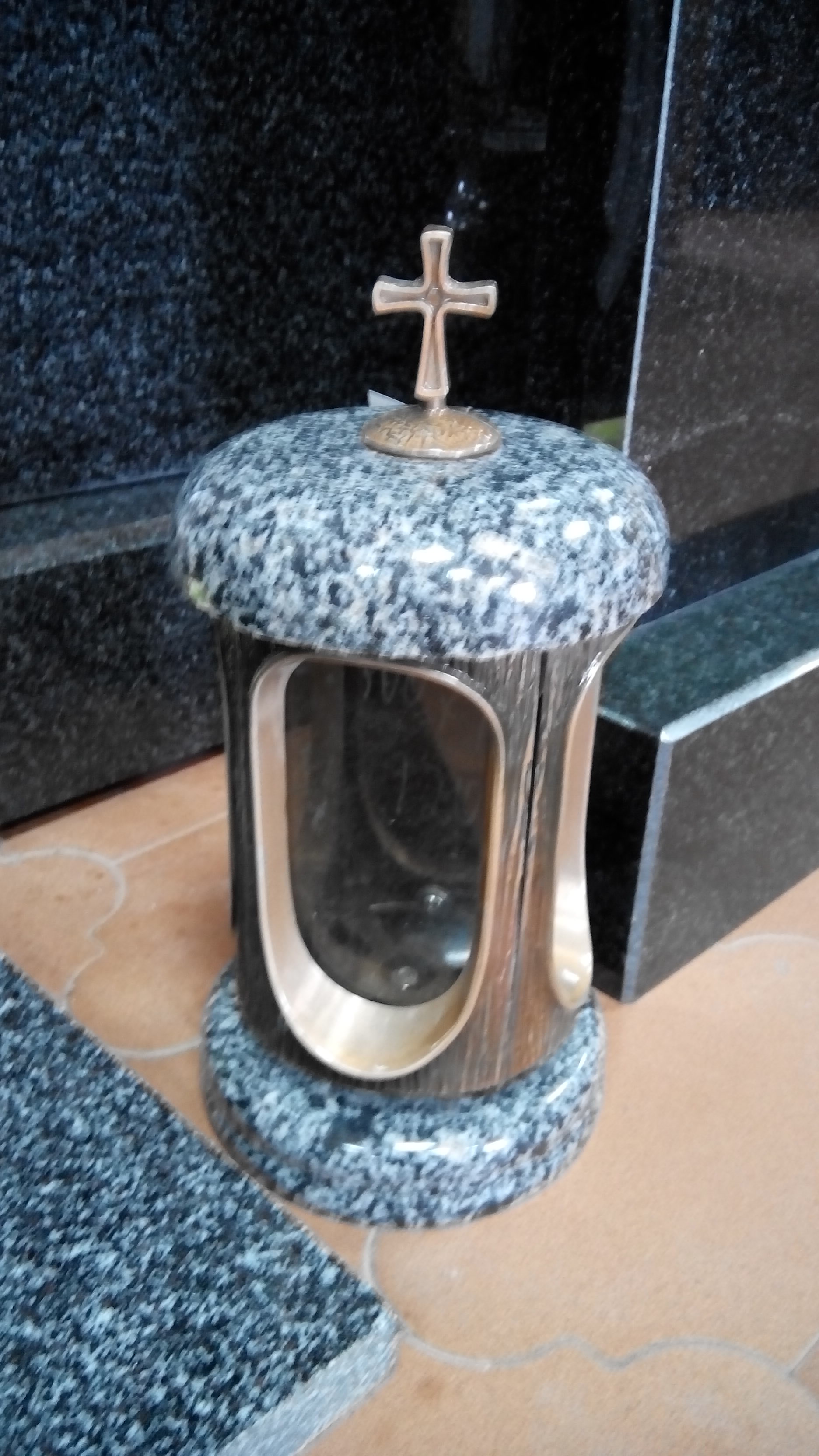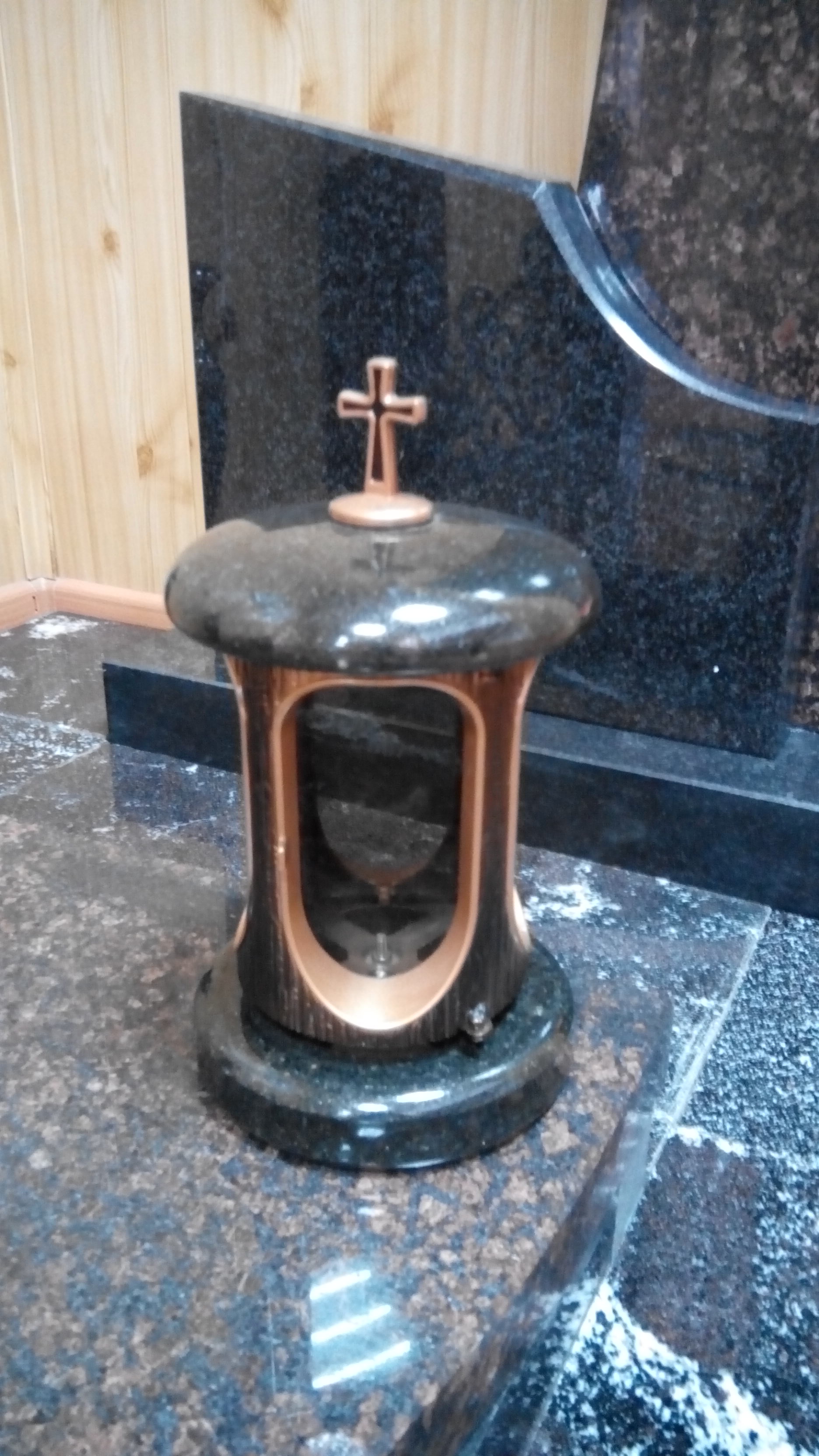 Лампады из гранита со стеклянными вставками, которые обеспечивают защиту фитилей и не допускают попадания влаги внутрь.